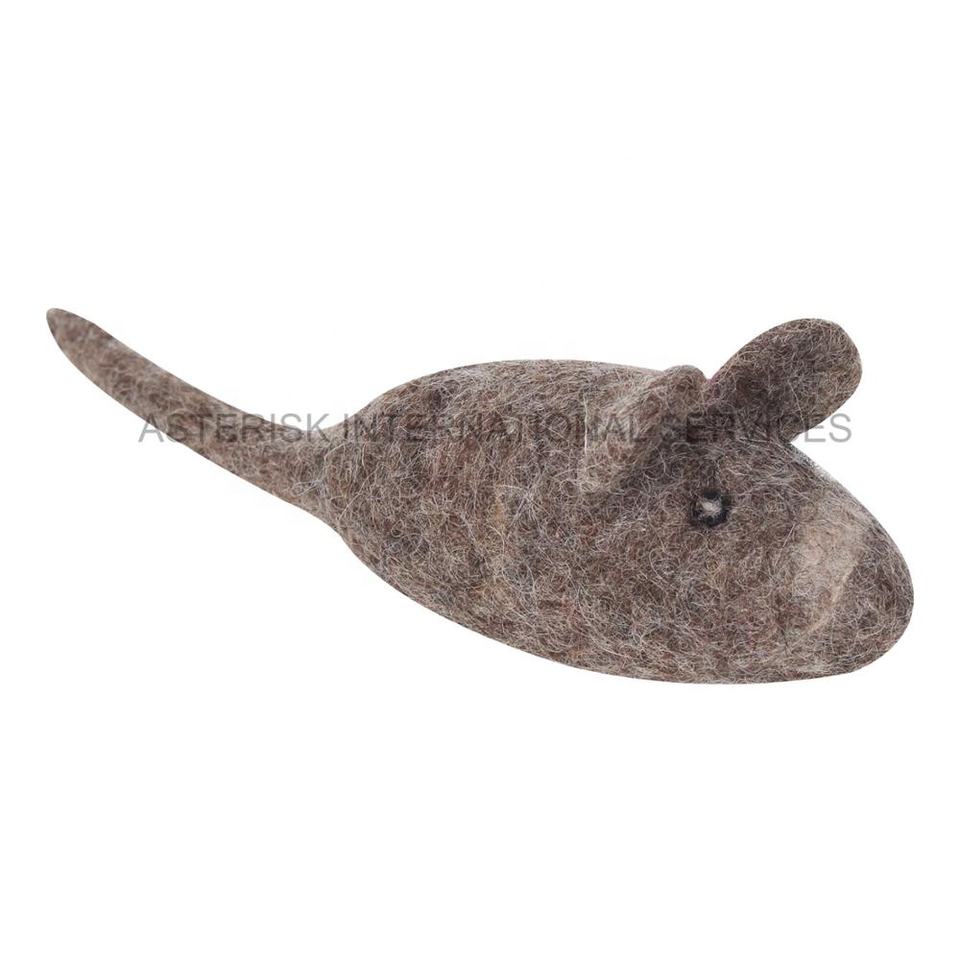 The felt mouse toy is approximately 3 x 2 inches in size, perfect for cats to bat and chase around.